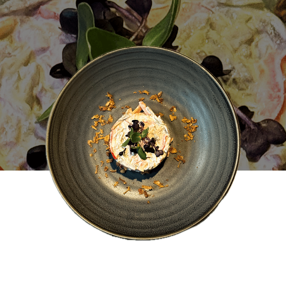 Кальмар с рукколой и тапенадом из вяленых томатов