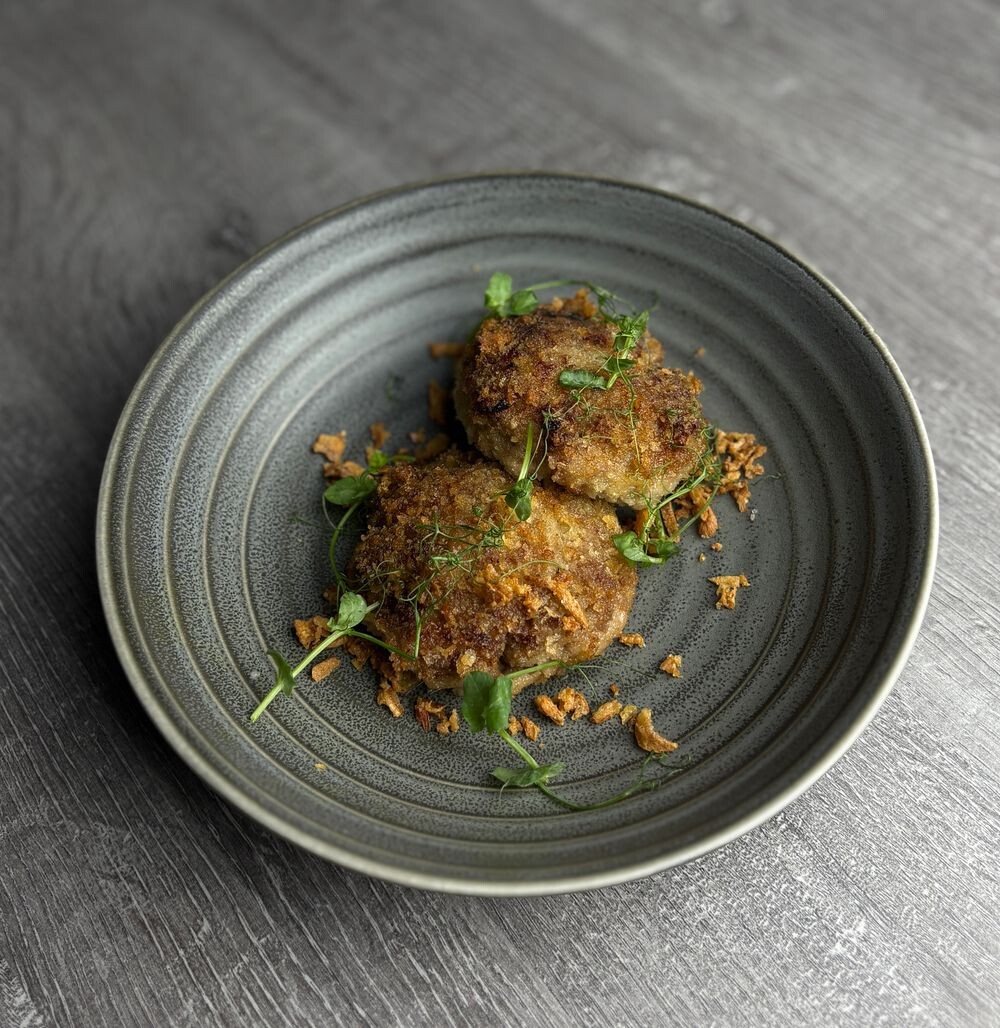 Говядина, свинина, лук пассерованный, сухари панко, клетчатка, молоко, яйцо, масло растительное, зелень