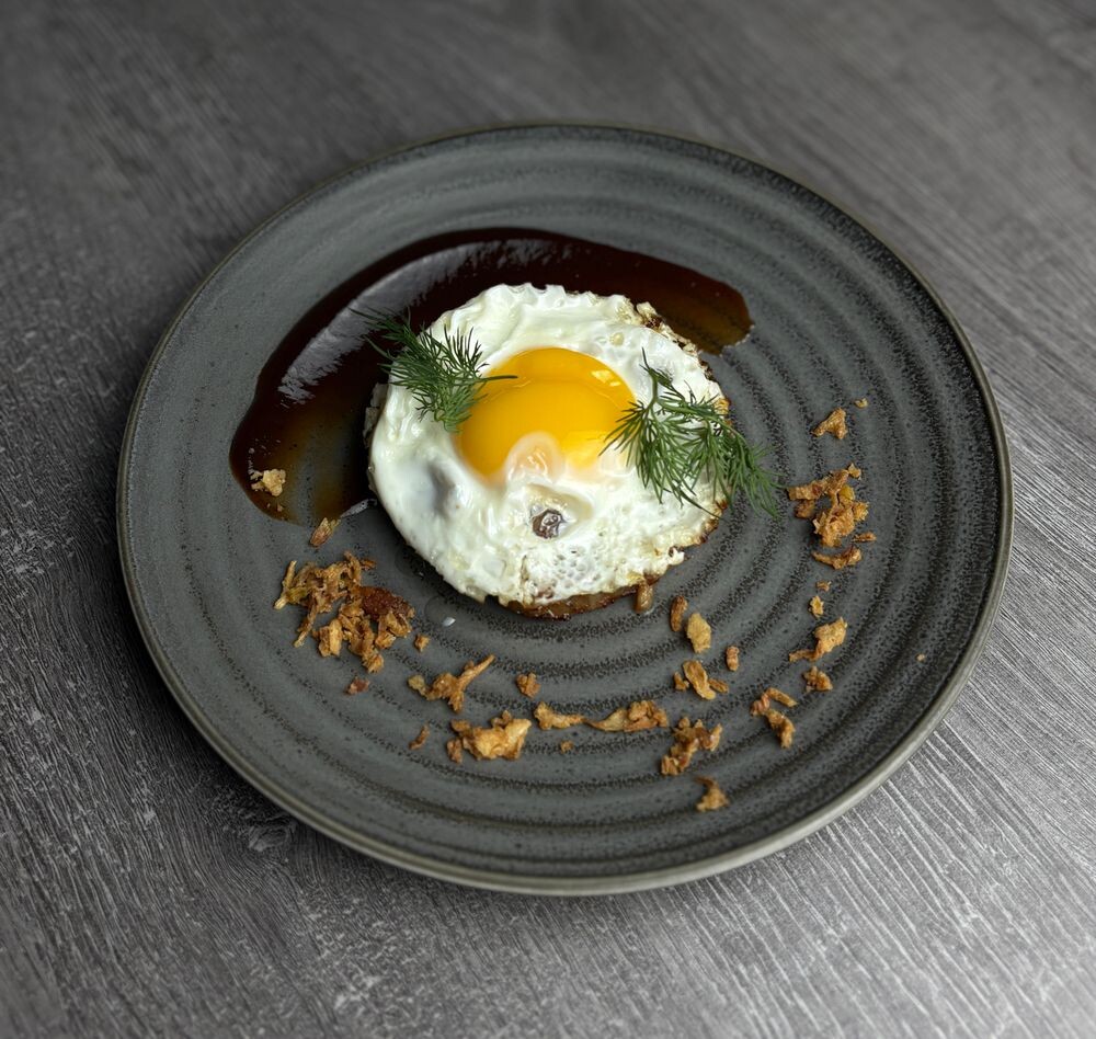 Бифштекс с яйцом и соусом виски-барбекю
