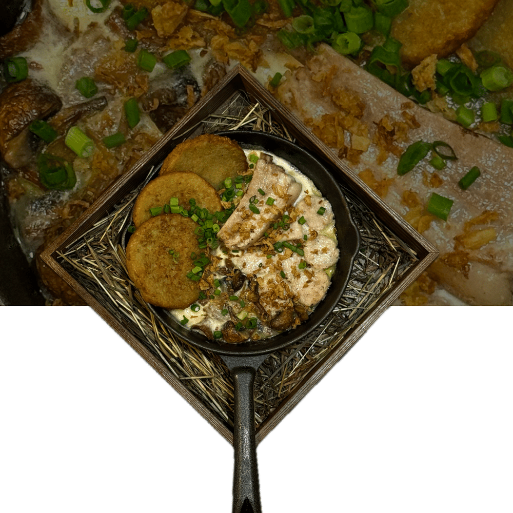 Традиционное для Белорусской кухни блюдо из домашней колбасы, свиного рёбрышка, сливочного соуса на пиве. Подаётся с драниками.